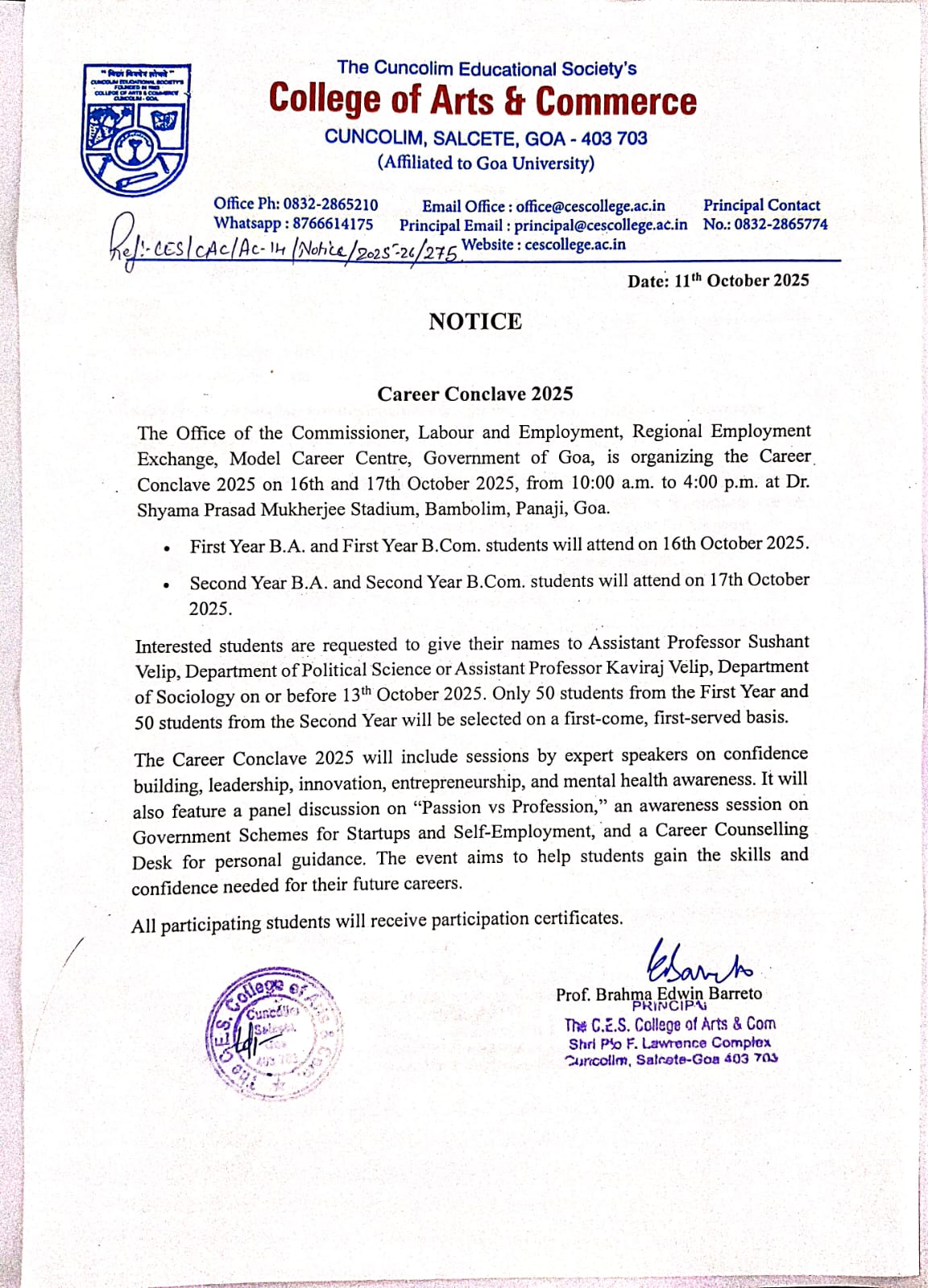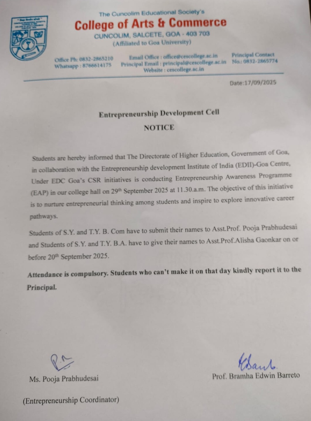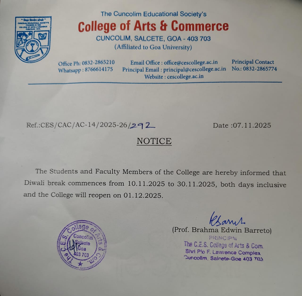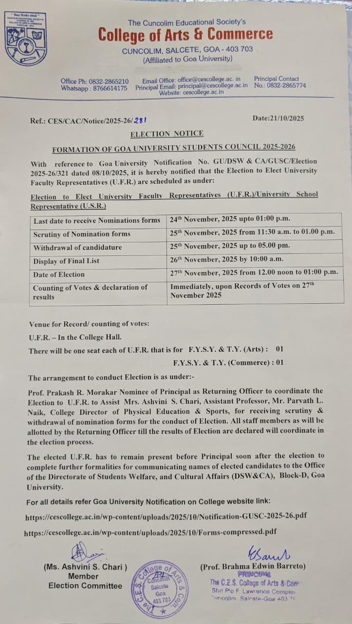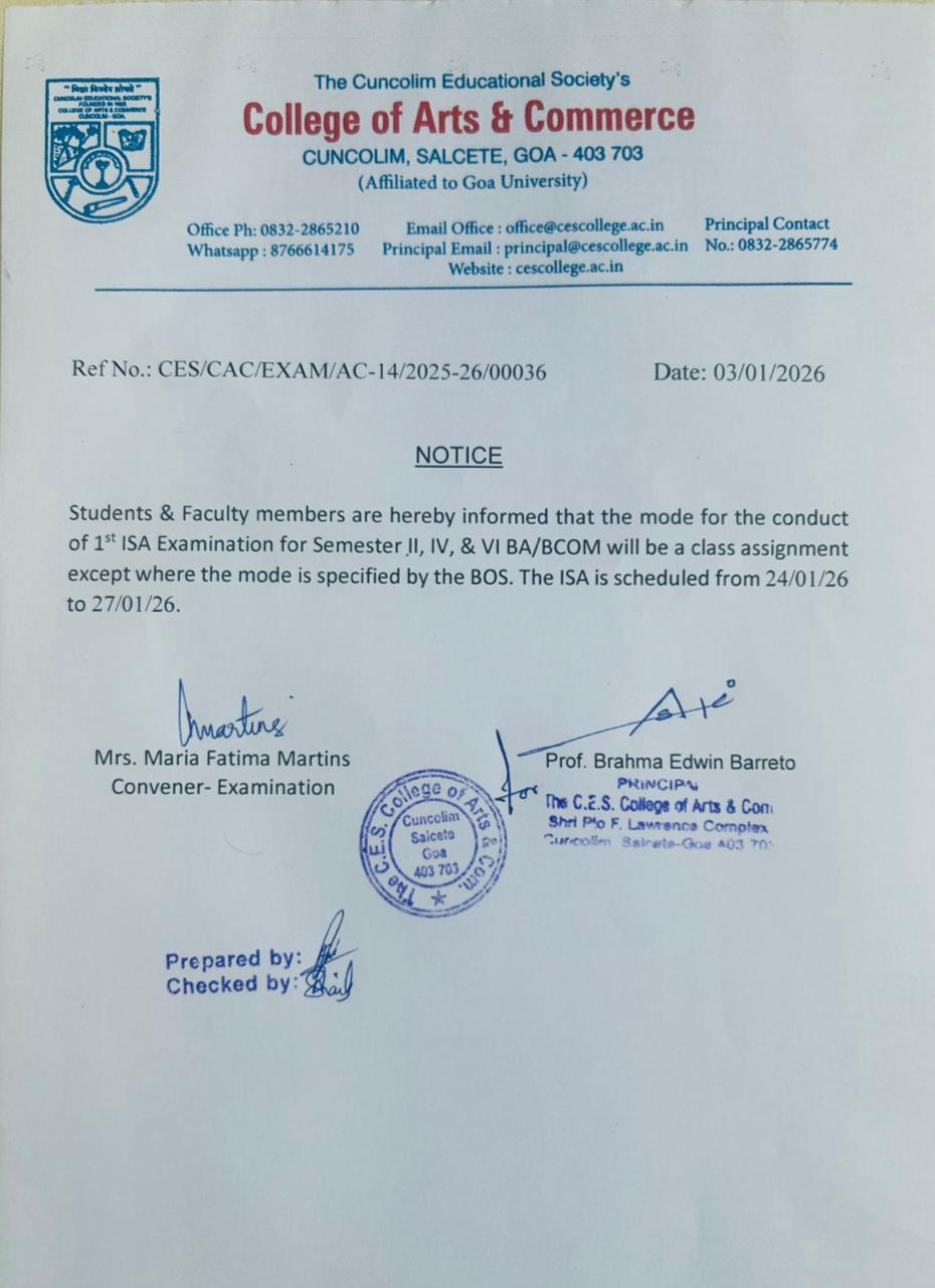Welcome to the Cuncolim Educational Society’s College of Arts and Commerce