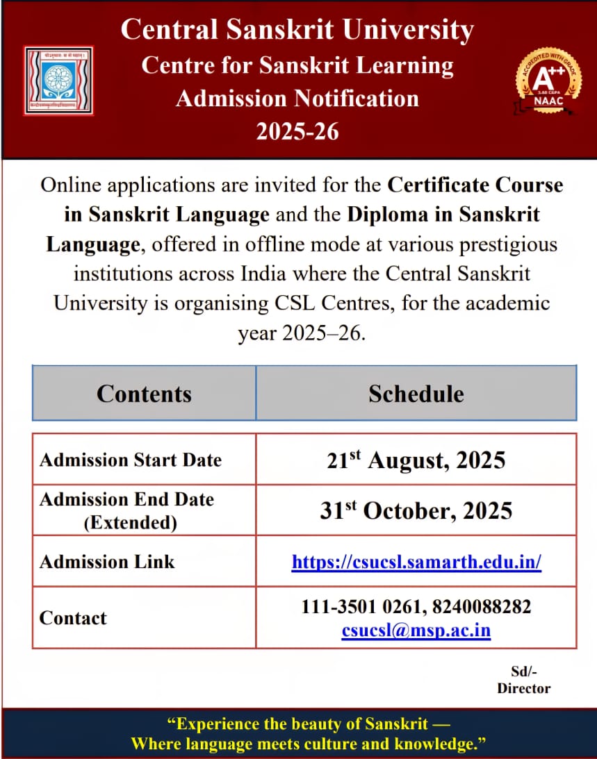 ⇒ Notification for Sanskrit Registration New