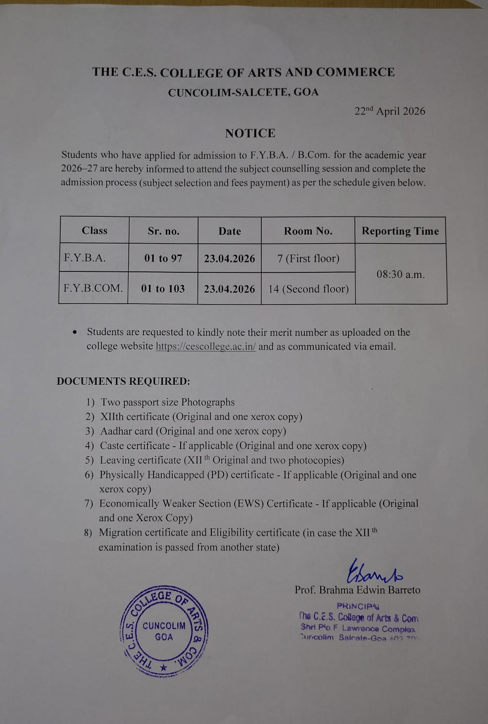 The first move in this direction was the establishment of the Cuncolim United High school in the year 1964. The Cuncolim United Higher Secondary School with Arts and Commerce streams was opened in the year 1981, followed by inclusion of Science Stream in June 1986. The gradual expansion is found with the introduction of Vocational courses in the year 1993. The Cuncolim Educational Society’s College of Arts and Commerce was established in the academic year 1987-88. The College offers Degree course in Bachelor of Arts and Bachelor of Commerce. Today it is one among the premier Educational Institutions in Goa.